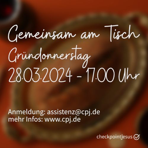 Am Gründonnersatg wollen wir im Checkpoint miteinander essen und Abendmahl feiern.