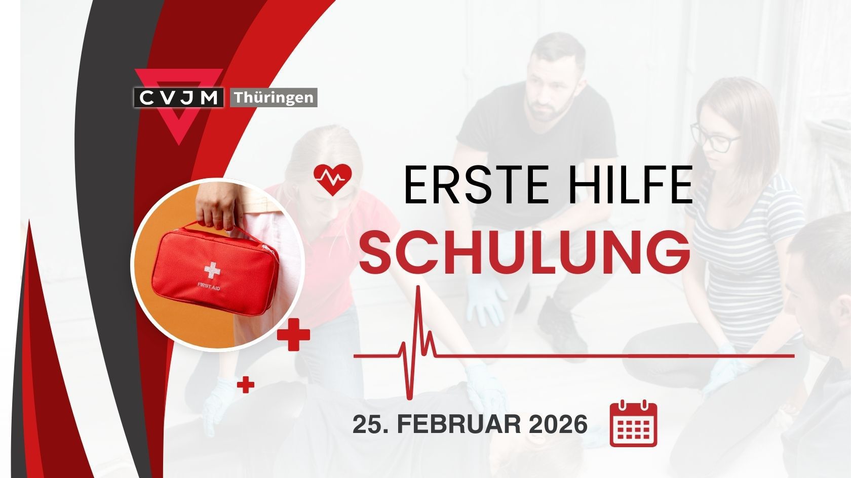 Wir machen am Mittwoch, den 25.02.26 einen Erste Hilfe Schulungstag (von 8:30 bis 16:30 Uhr) und wer mag, darf gern von euch kostenfrei dabei sein. Veranstaltungsort ist der CVJM Thüringen, Gerberstraße 14a, Erfurt.